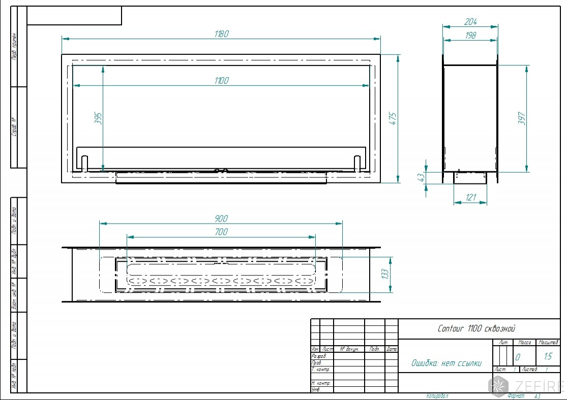Биокамин Contour сквозной 1100 (Estetic Flame)