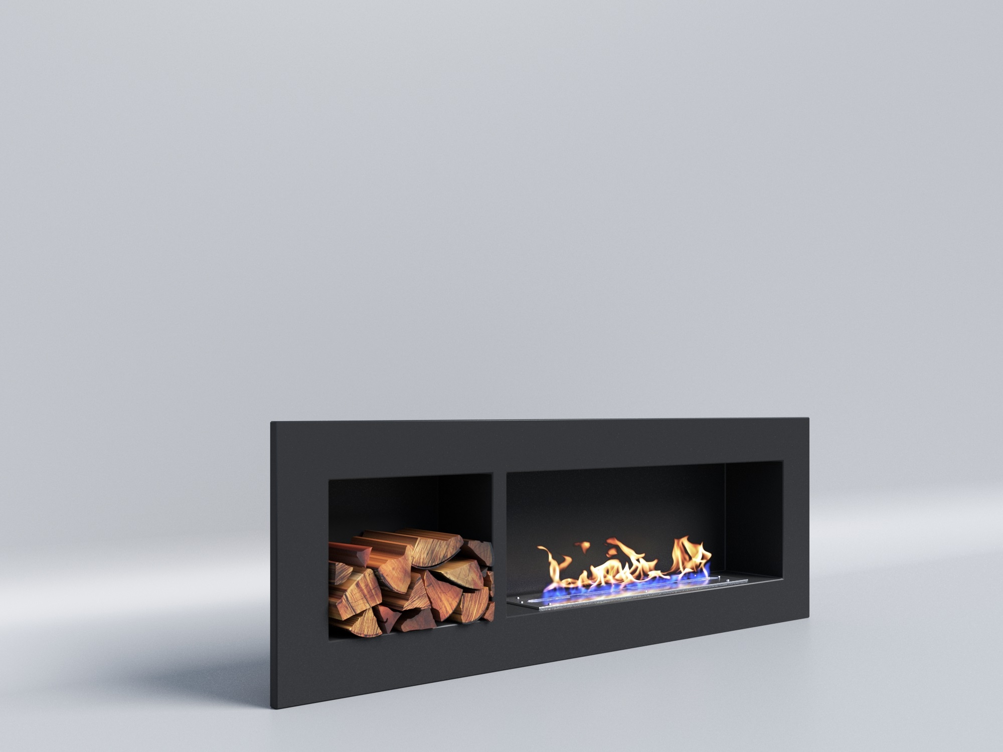 Очаг – это емкость куда заливается жидкое топливо. Емкость внутри заполняется керамическим материалом, который впитывает биотопливо, и в случае опрокидывания камина топливо не разливается. За счет этого конструкция стала полностью пожаробезопасной. Очаг встраивается в корпус из стали, который окрашивается специальной термостойкой краской, или же в заранее подготовленную нишу, изготовленную из негорючих материалов.