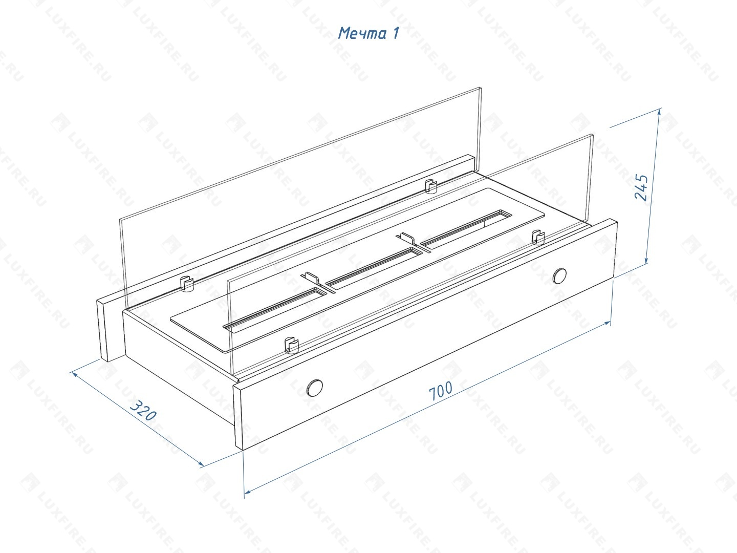 Размер биокамина (ВхШхГ; мм): 250х700х320.